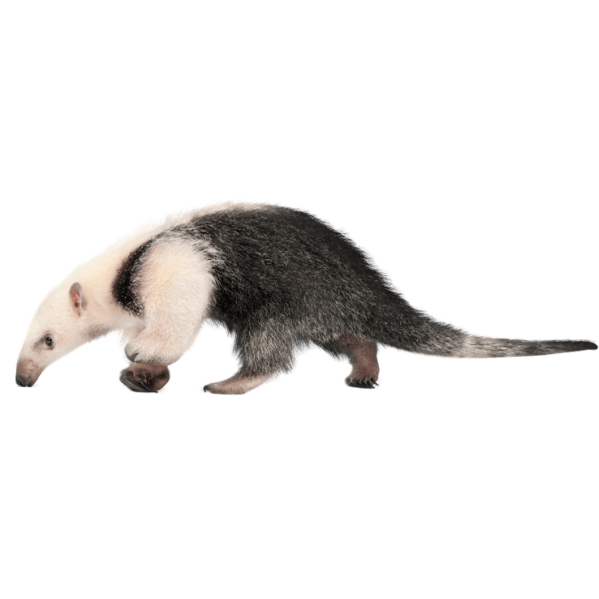 とても長い鼻と舌を持ち、アリの巣に舌を突っ込んでアリを食べます。1日に約35,000匹ものアリやシロアリを食べることができます。