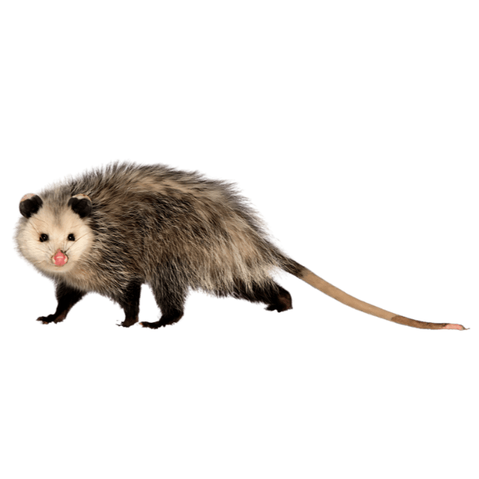 北米唯一の有袋類で、赤ちゃんを育てるお腹の袋を持っています。危険を感じると死んだふりをして身を守ります。手のような後ろ足の親指で木の枝をつかめます。