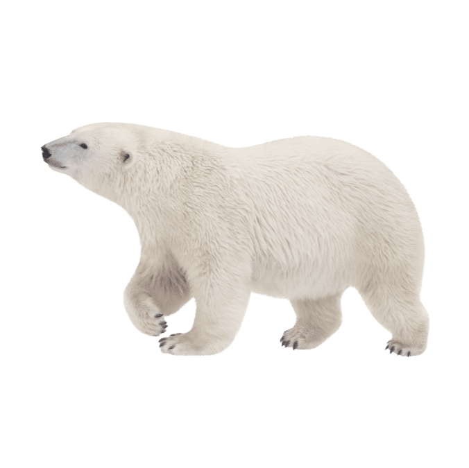 実はシロクマの毛は透明で、皮膚は黒いのです!白く見えるのは、毛が光を反射しているからです。泳ぎが上手で、海の中でアザラシを捕まえます。