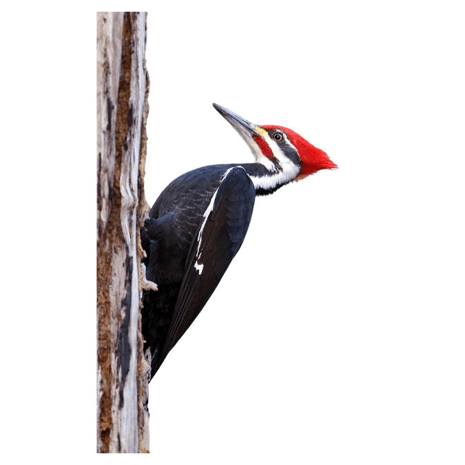 木をコンコンとつついて虫を探す鳥です。木をつつく衝撃から脳を守る特別な頭の構造があり、木にしがみつくために前に2本、後ろに2本の指を持っています。