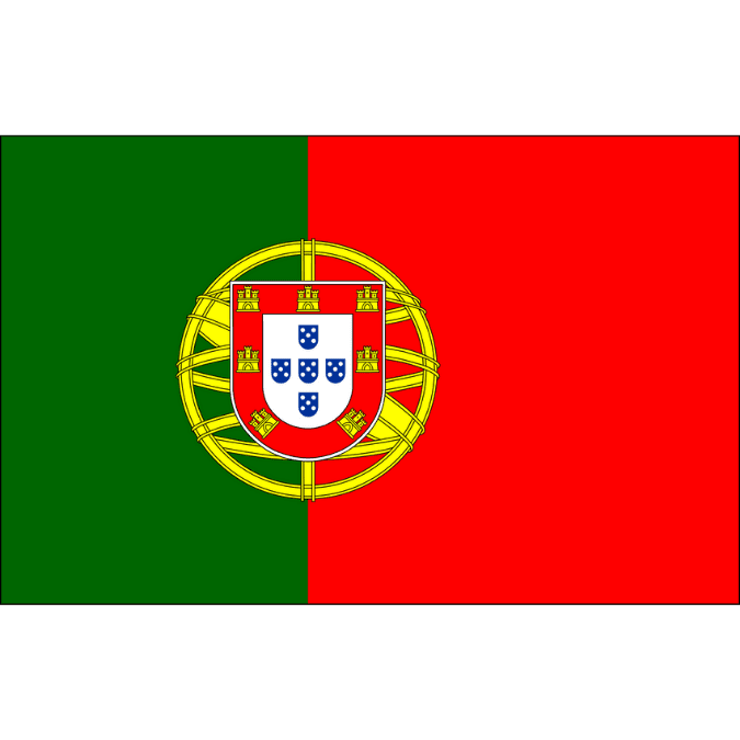 ポルトガルの国旗は緑と赤の縦2色旗で、中央に国章があります。緑は希望を、赤は勇気と流血を表し、国章は大航海時代のポルトガルの海洋探検の歴史を象徴しています。