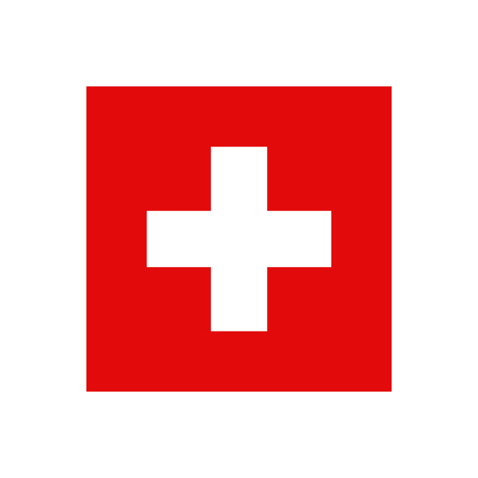 スイスの国旗は正方形の赤地に白い十字があり、バチカン市国と並んで正方形の国旗を持つ数少ない国の一つです。この十字はキリスト教の象徴で、デザインは13世紀に起源があると言われています。