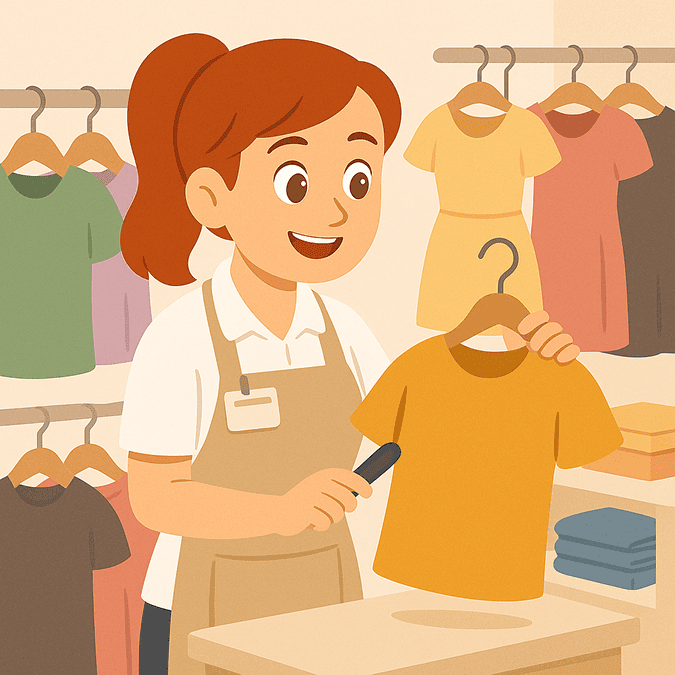 お客様の好みや体型に合った服を提案します。店内のディスプレイや商品整理も行います。