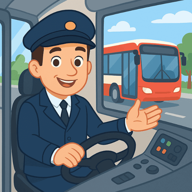 バスを運転して、乗客を目的地まで安全に送り届けます。