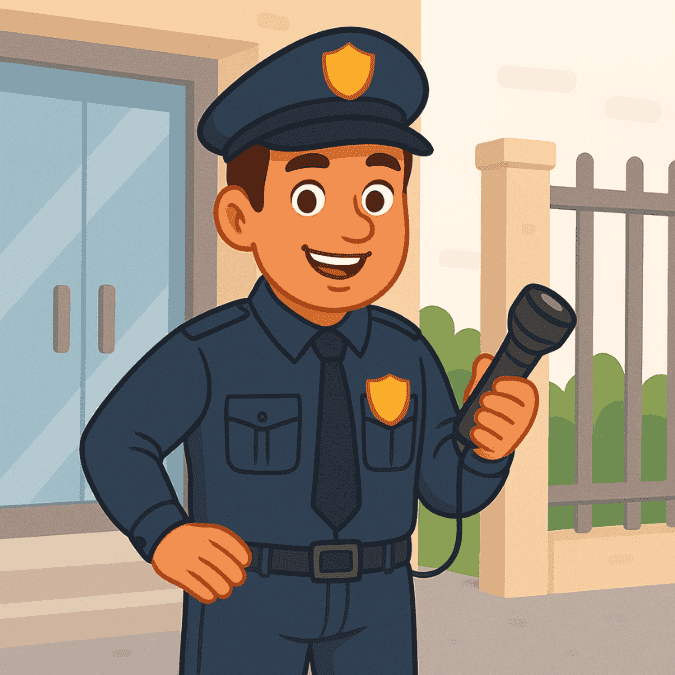 夜間に建物を見回る「巡回警備」や、出入り口を見張る「施設警備」など、いろいろなタイプの警備員がいます。