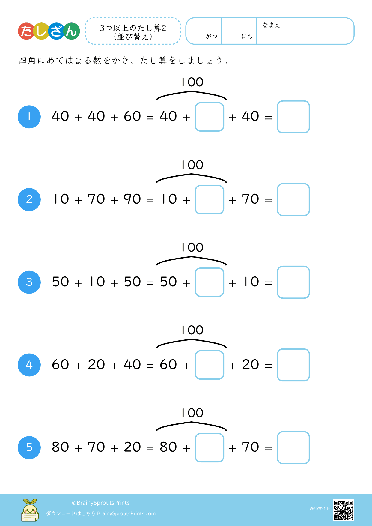 3つ以上のたし算(並び替え)100 #3