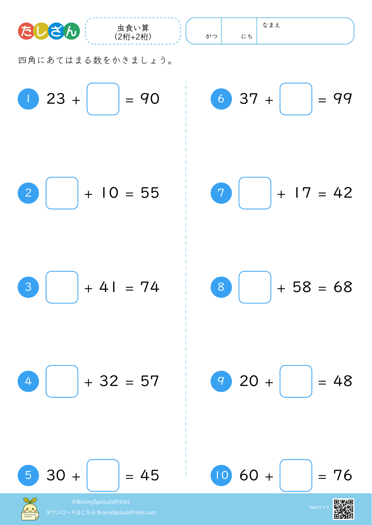 プリントの内容や難易度はあくまで目安です。同じ年齢でも理解のスピードや興味には個人差がありますので、無理に進めず、お子さまのペースに合わせてご利用いただくことをおすすめします。印刷時の設定や用紙サイズによって見え方が異なる場合がありますので、必要に応じて調整してください。教材は個人利用および教育目的の範囲内でご利用ください。詳しくは 利用規約 をご覧ください。