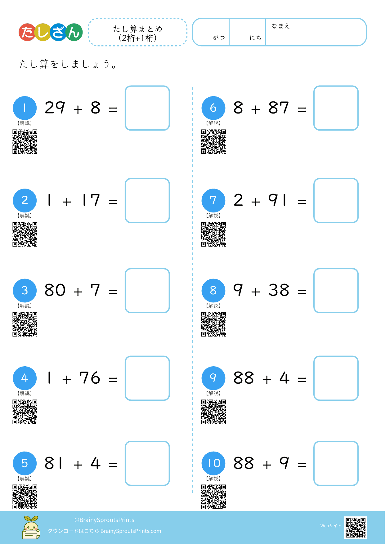 たし算まとめ(2桁+1桁)#3