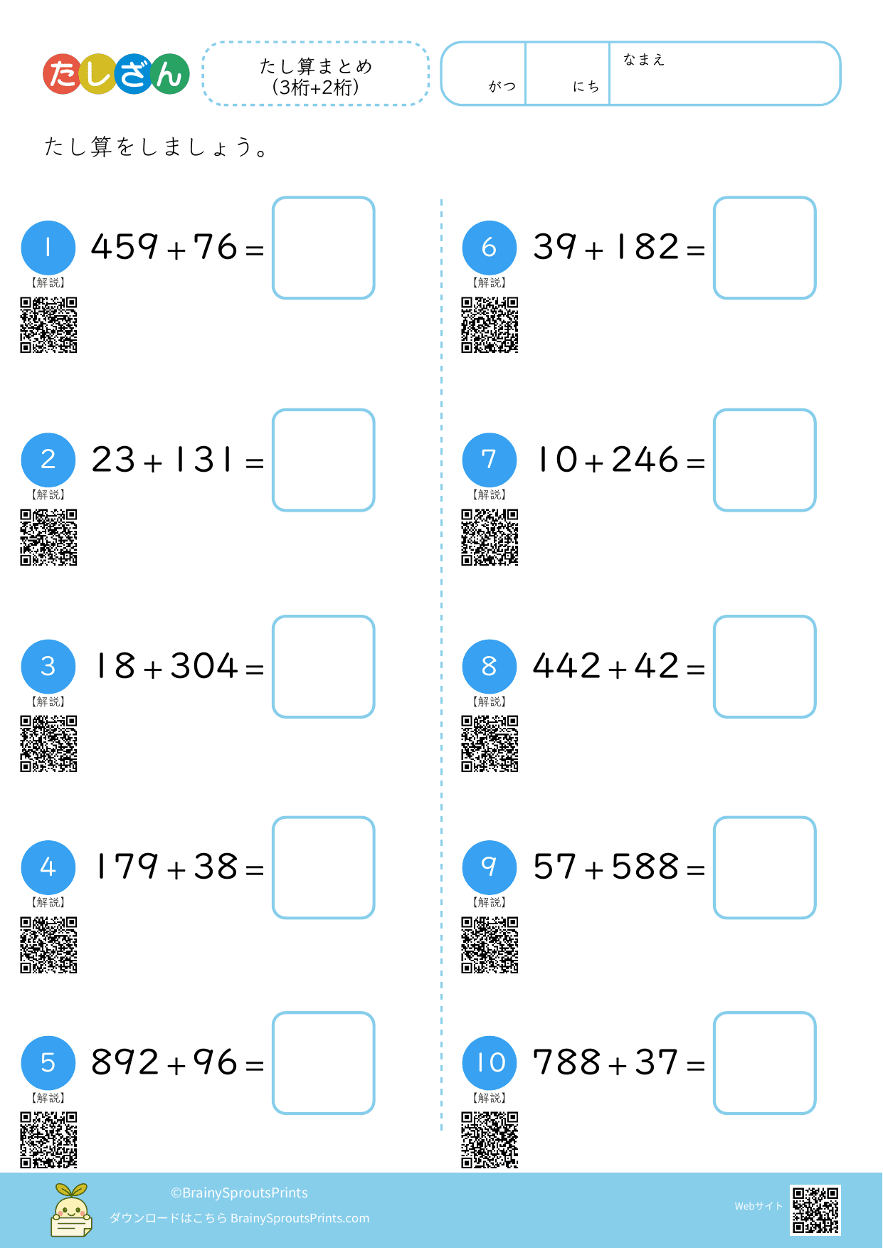 たし算まとめ(3桁+2桁)#1