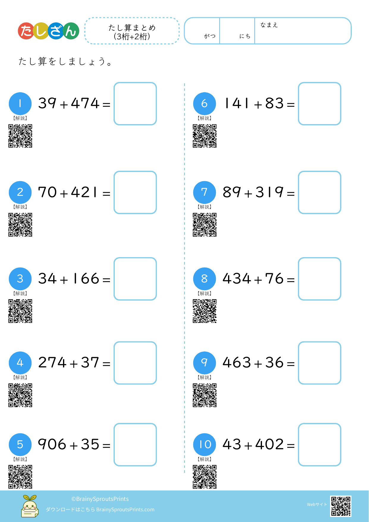 たし算まとめ(3桁+2桁)#2