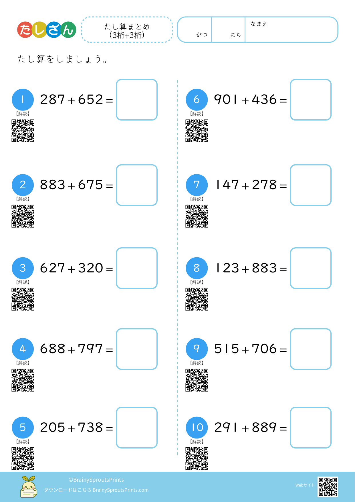 たし算まとめ(3桁+3桁)#3