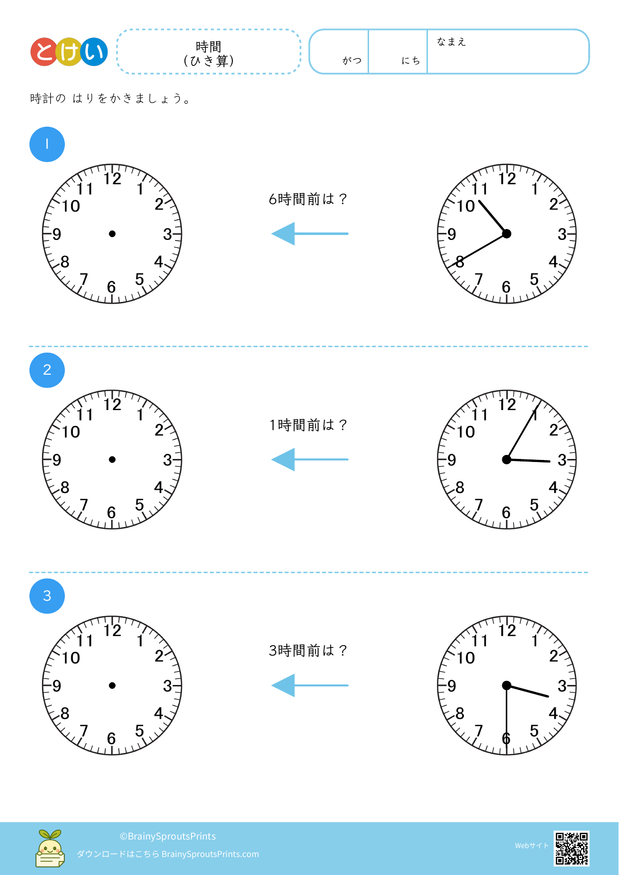 時間 (ひき算) #1