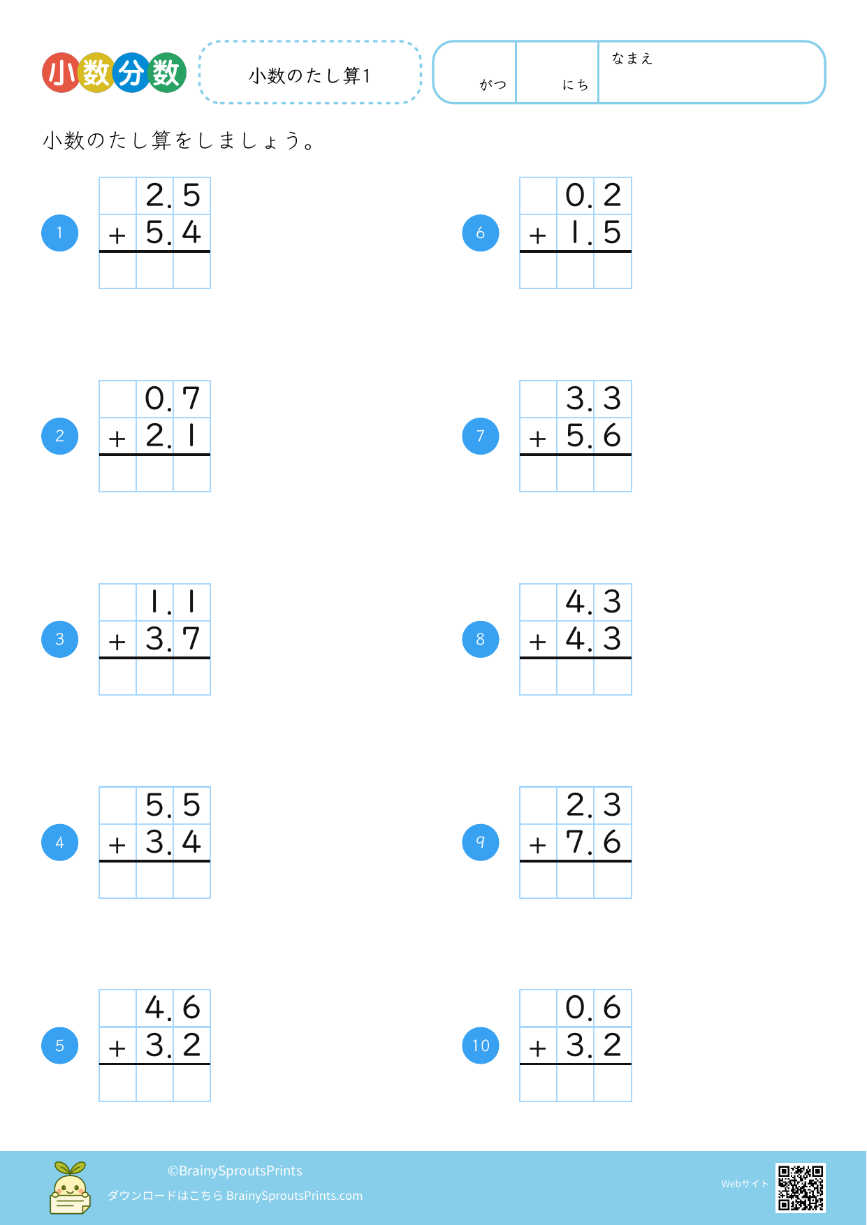 小数を数の大きさとして捉えながら、分数や図とのつながりも見やすいプリントです。位の並びだけでなく、1より小さい数をどう考えるかを整理したい時に向いています。