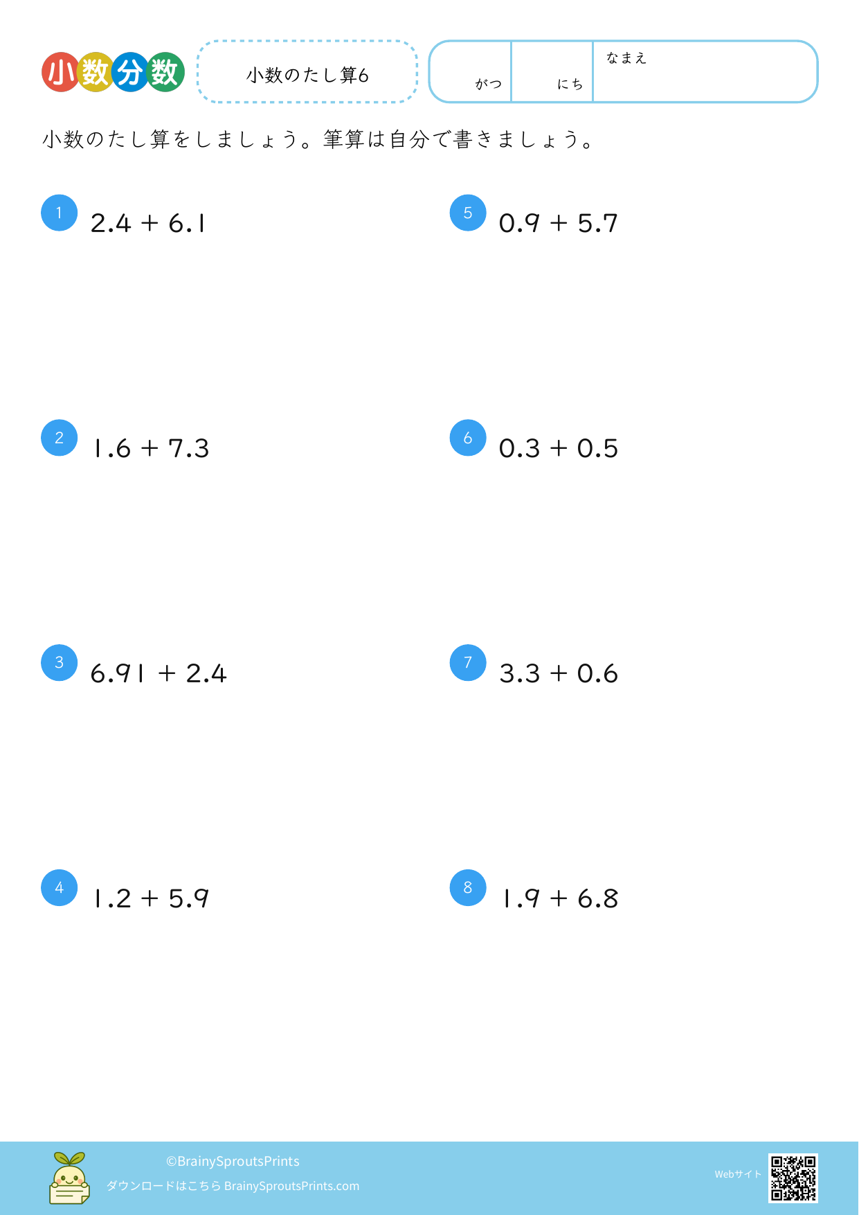 小数を数の大きさとして捉えながら、分数や図とのつながりも見やすいプリントです。位の並びだけでなく、1より小さい数をどう考えるかを整理したい時に向いています。