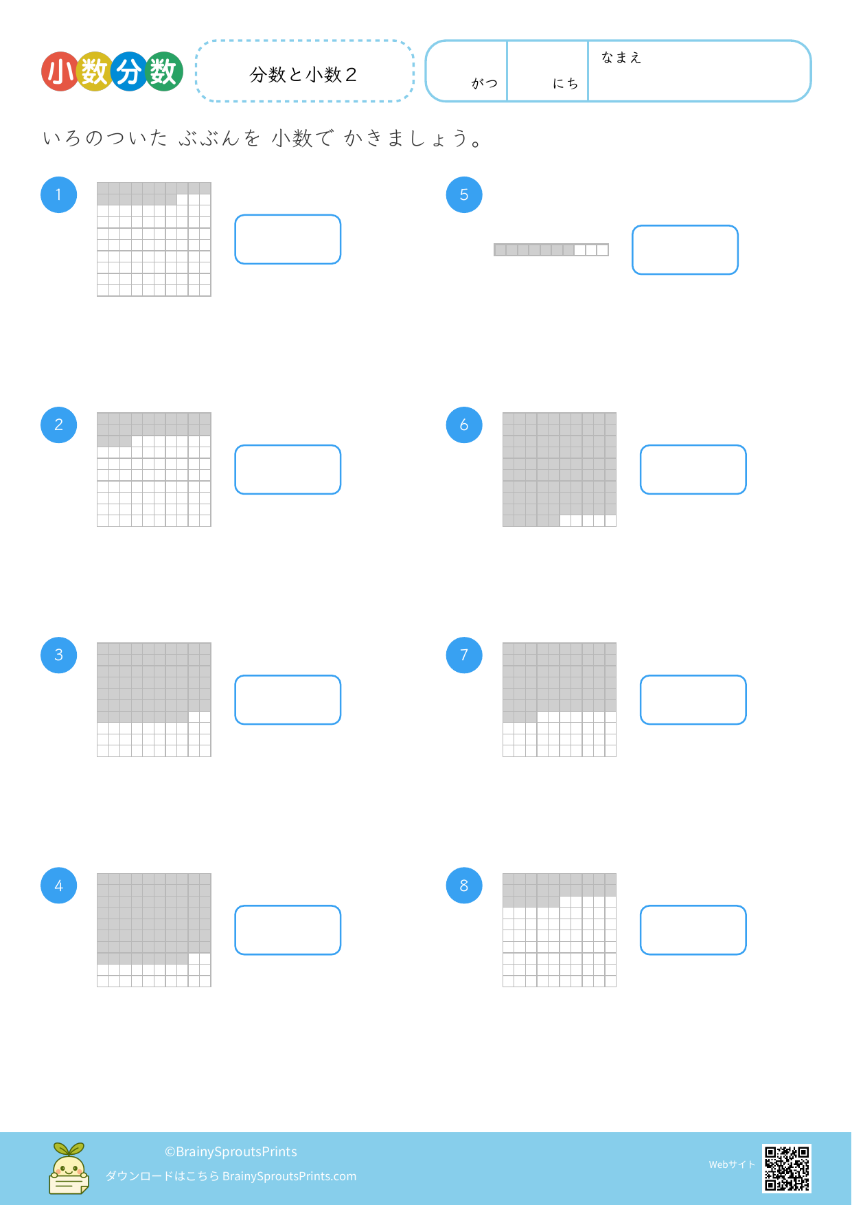 小数を数の大きさとして捉えながら、分数や図とのつながりも見やすいプリントです。位の並びだけでなく、1より小さい数をどう考えるかを整理したい時に向いています。
