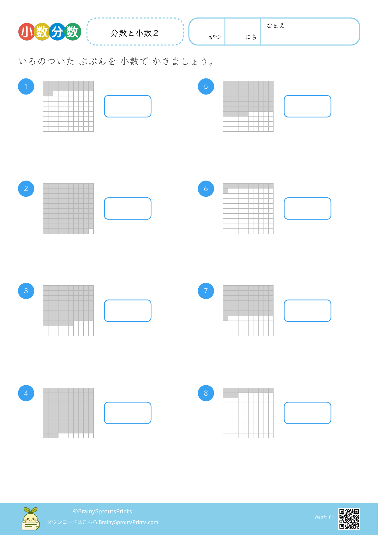 小数を数の大きさとして捉えながら、分数や図とのつながりも見やすいプリントです。位の並びだけでなく、1より小さい数をどう考えるかを整理したい時に向いています。