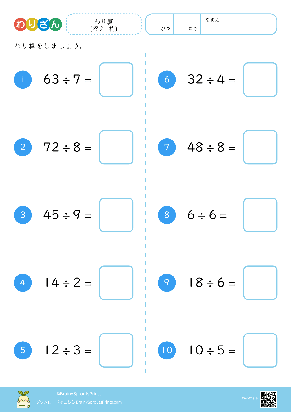 わり算(答え1桁) #3