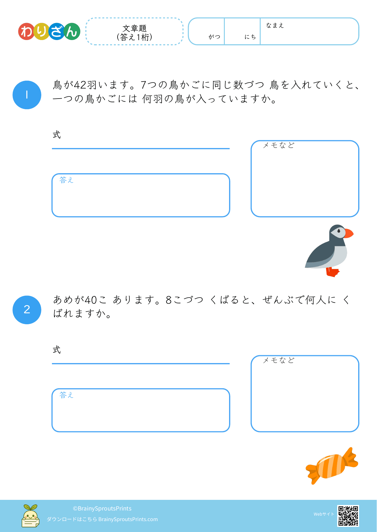 BrainySprouts Prints は、未就学児から小学生までの子どもを対象とした学習プリントを、保護者や教育者の方が家庭学習や教育現場で活用することを目的とした教育サイトです。語彙力や思考力を育てることを大切にし、日常の学習に無理なく取り入れられるシンプルな教材づくりを心がけています。