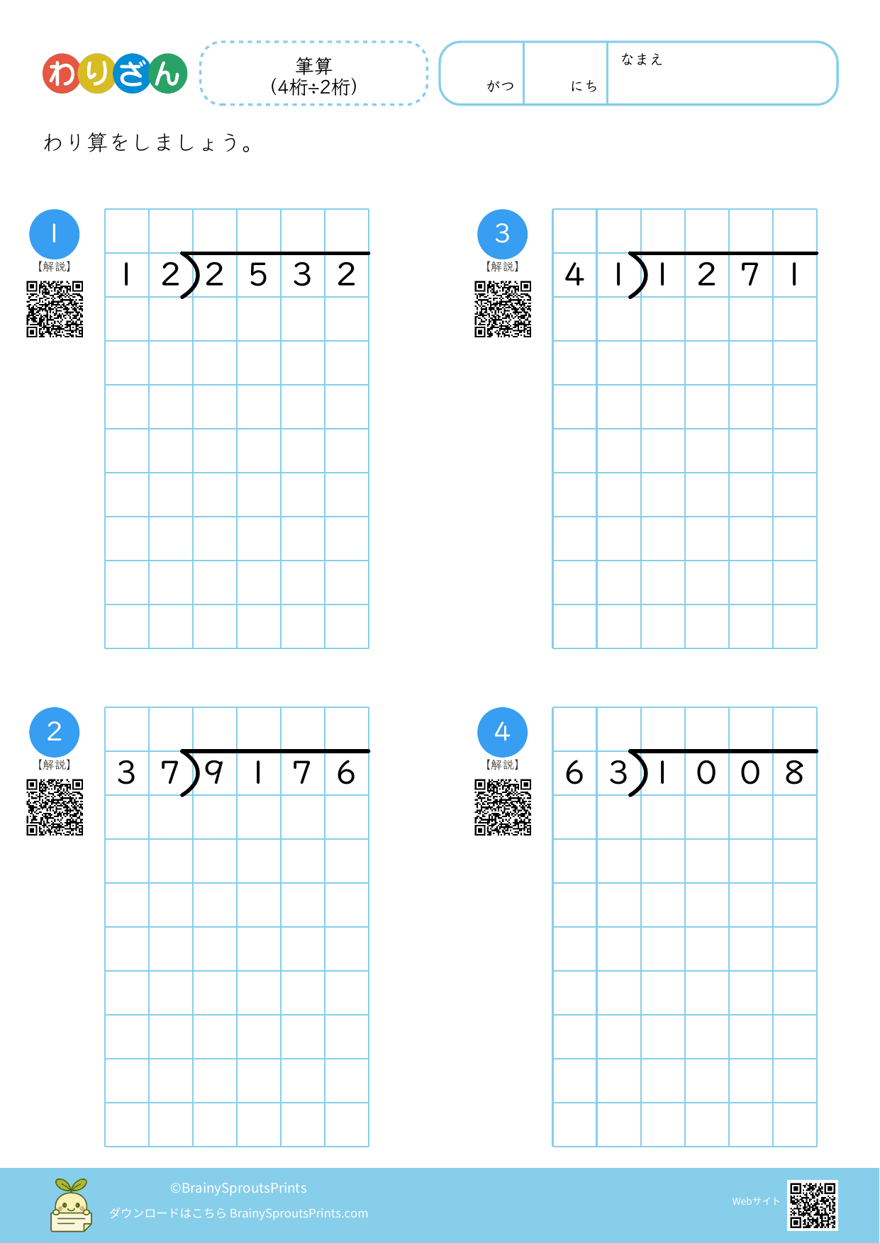 計算の答えを出すことだけでなく、数をどう捉えたか、どの手順で進めたかを確かめやすいプリントです。短い時間でも考え方を崩さずに反復すると、計算が安定しやすくなります。 速さよりも、迷わず手順を追えるか、途中で何をしているかを言葉にできるかを見ながら使うと、次の単元にもつながりやすくなります。