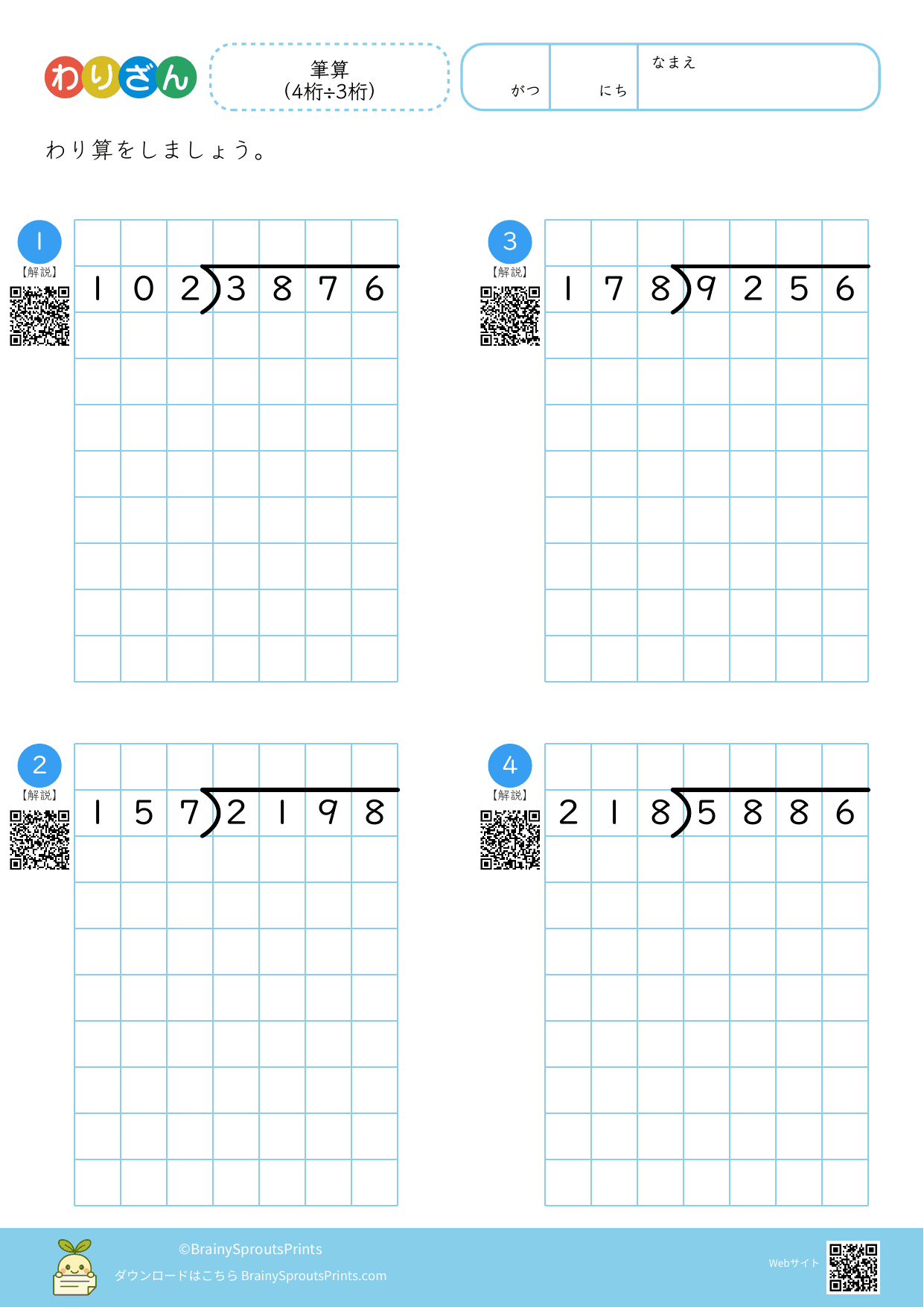 計算の答えを出すことだけでなく、数をどう捉えたか、どの手順で進めたかを確かめやすいプリントです。短い時間でも考え方を崩さずに反復すると、計算が安定しやすくなります。 速さよりも、迷わず手順を追えるか、途中で何をしているかを言葉にできるかを見ながら使うと、次の単元にもつながりやすくなります。