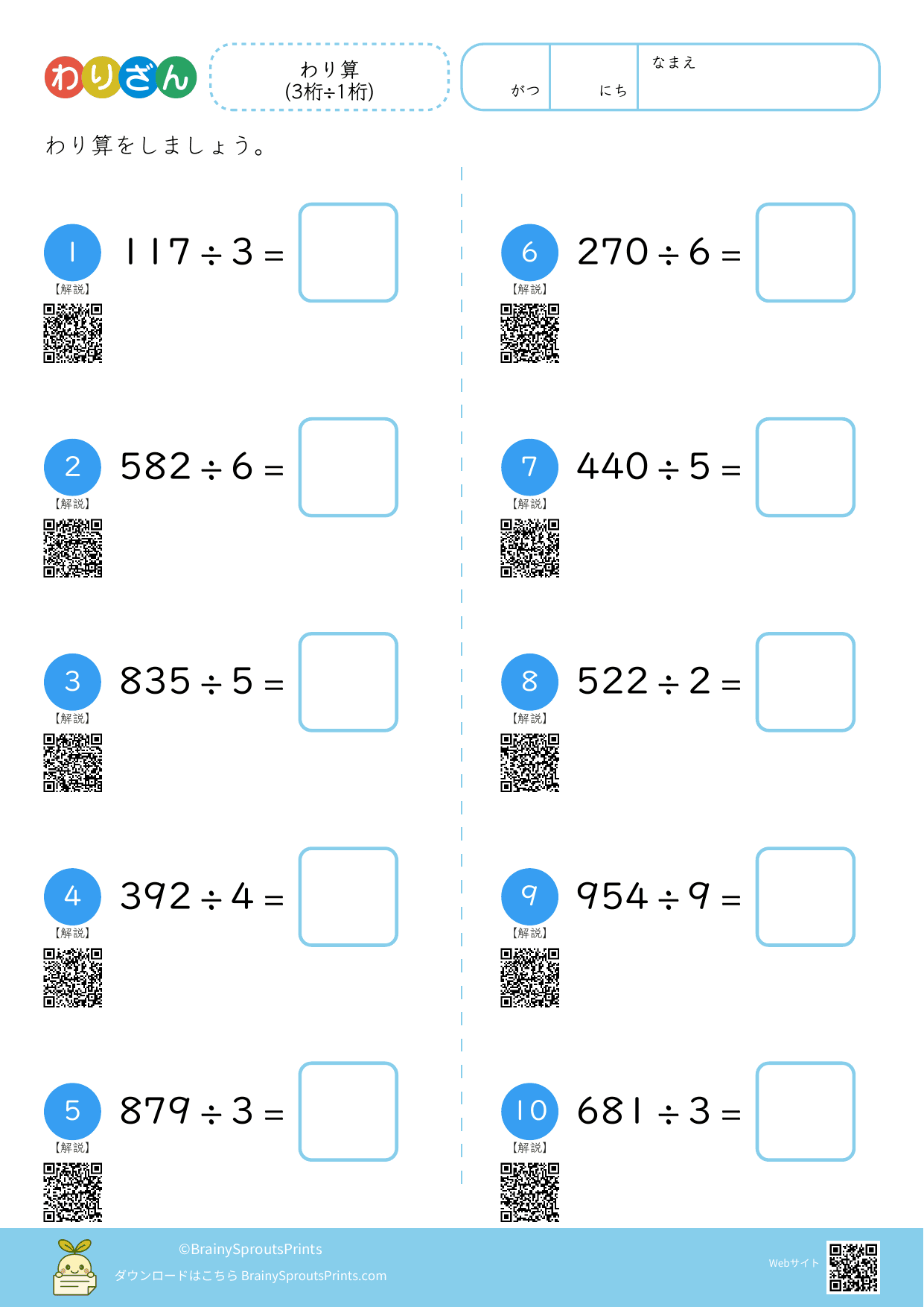わり算(3桁÷1桁・余り無) #1