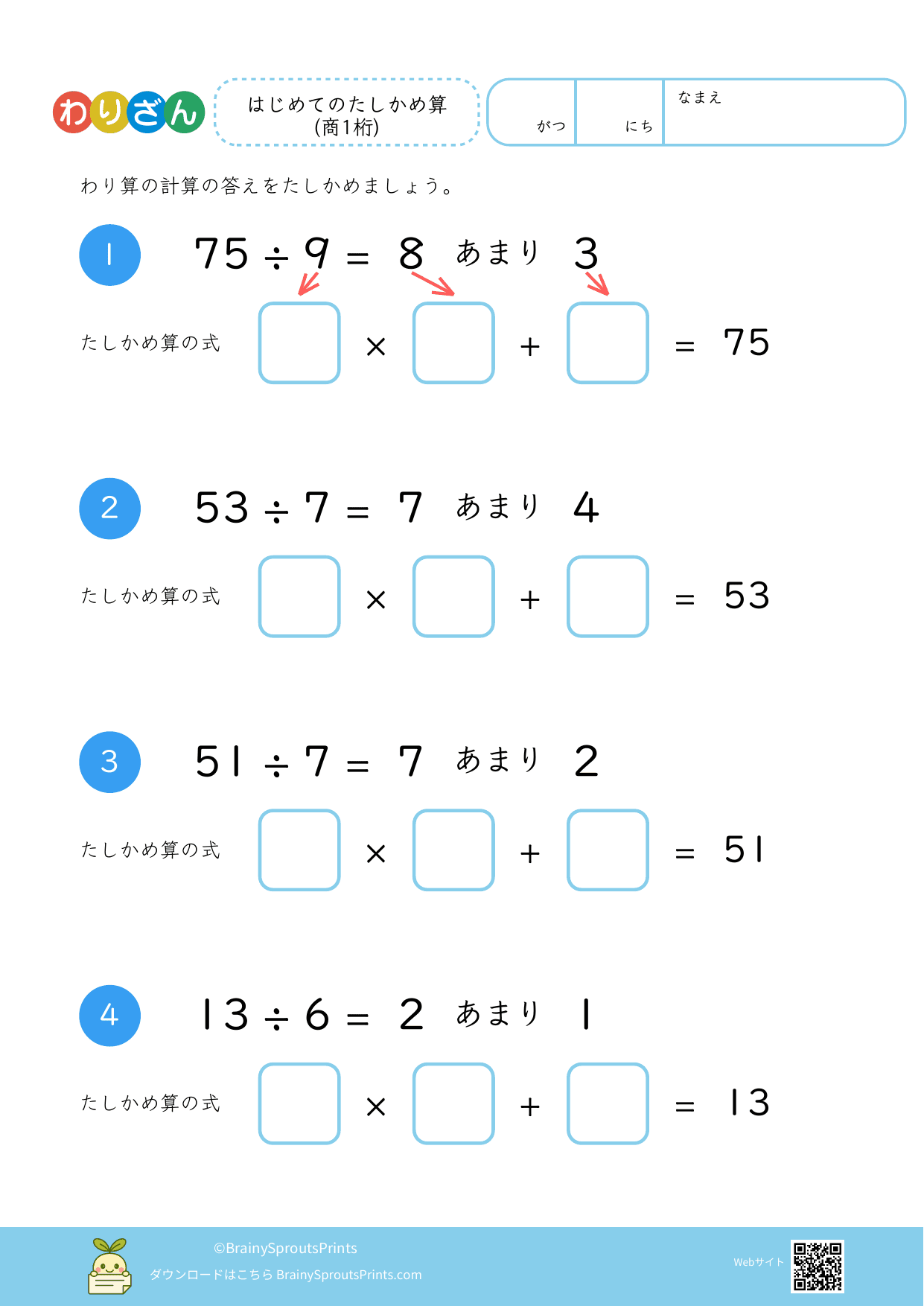 わり算たしかめ算(商1桁・余り有) #2