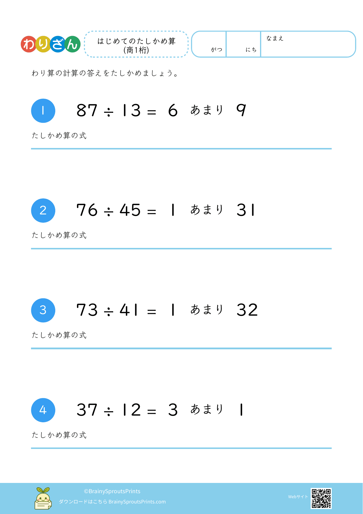 わり算たしかめ算(2桁÷2桁・余り有 #2