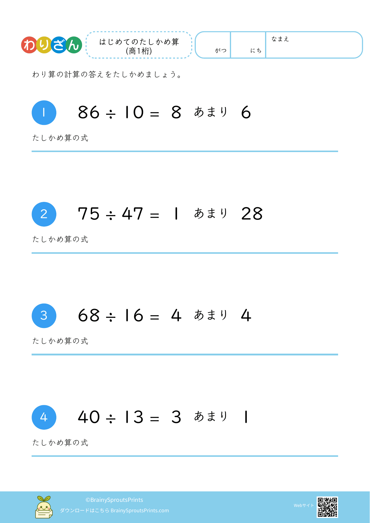 わり算たしかめ算(2桁÷2桁・余り有 #4