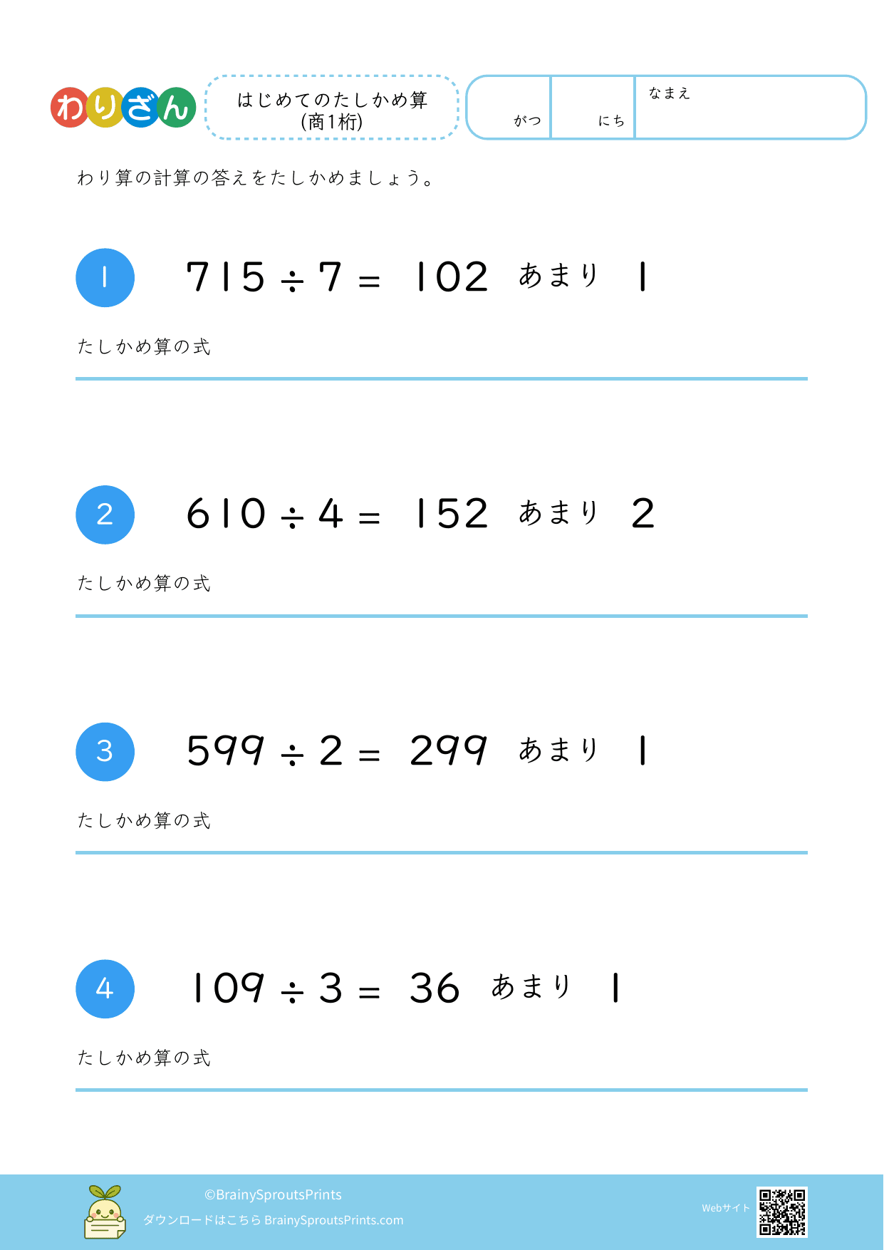 わり算たしかめ算(3桁÷1桁・余り有 #5