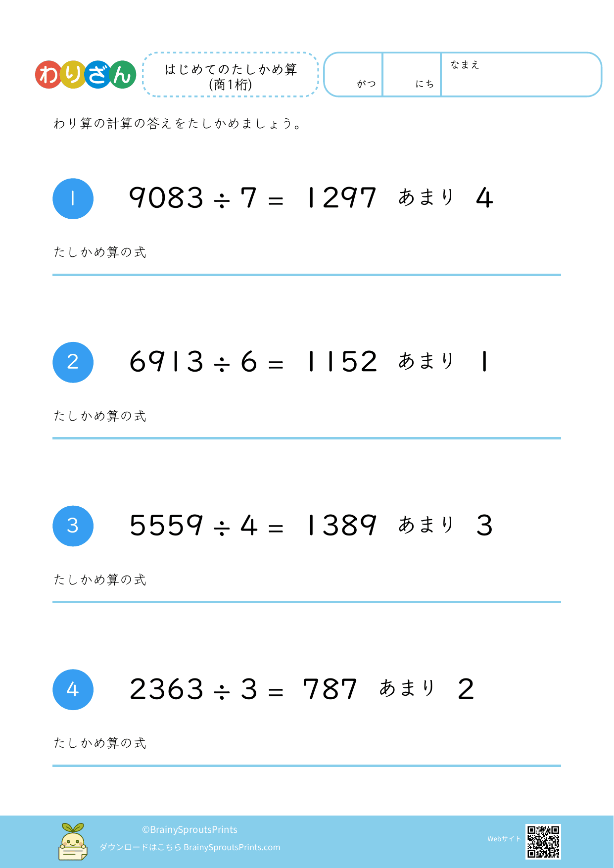 わり算たしかめ算(4桁÷1桁・余り有) #3