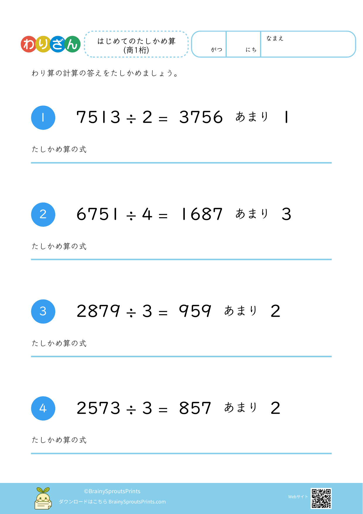 わり算たしかめ算(4桁÷1桁・余り有) #5