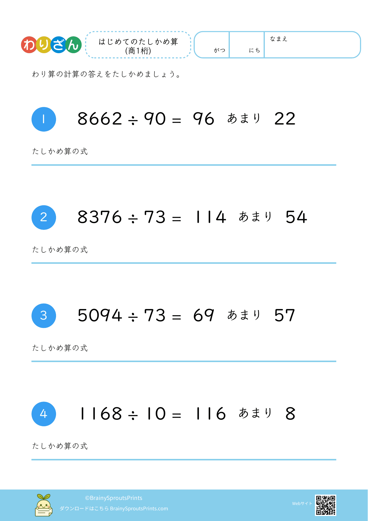 わり算たしかめ算(4桁÷2桁・余り有) #1