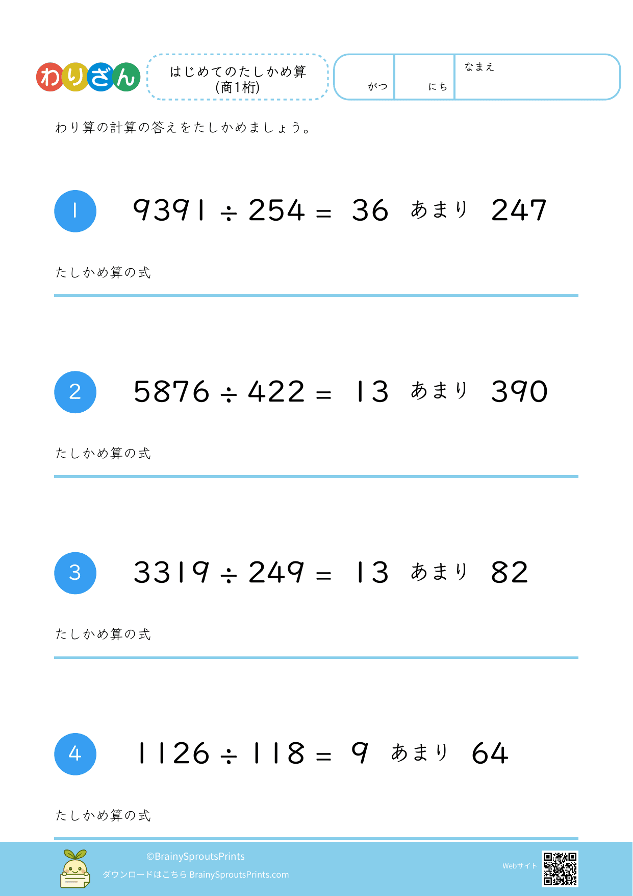 わり算たしかめ算(4桁÷3桁・余り有) #3