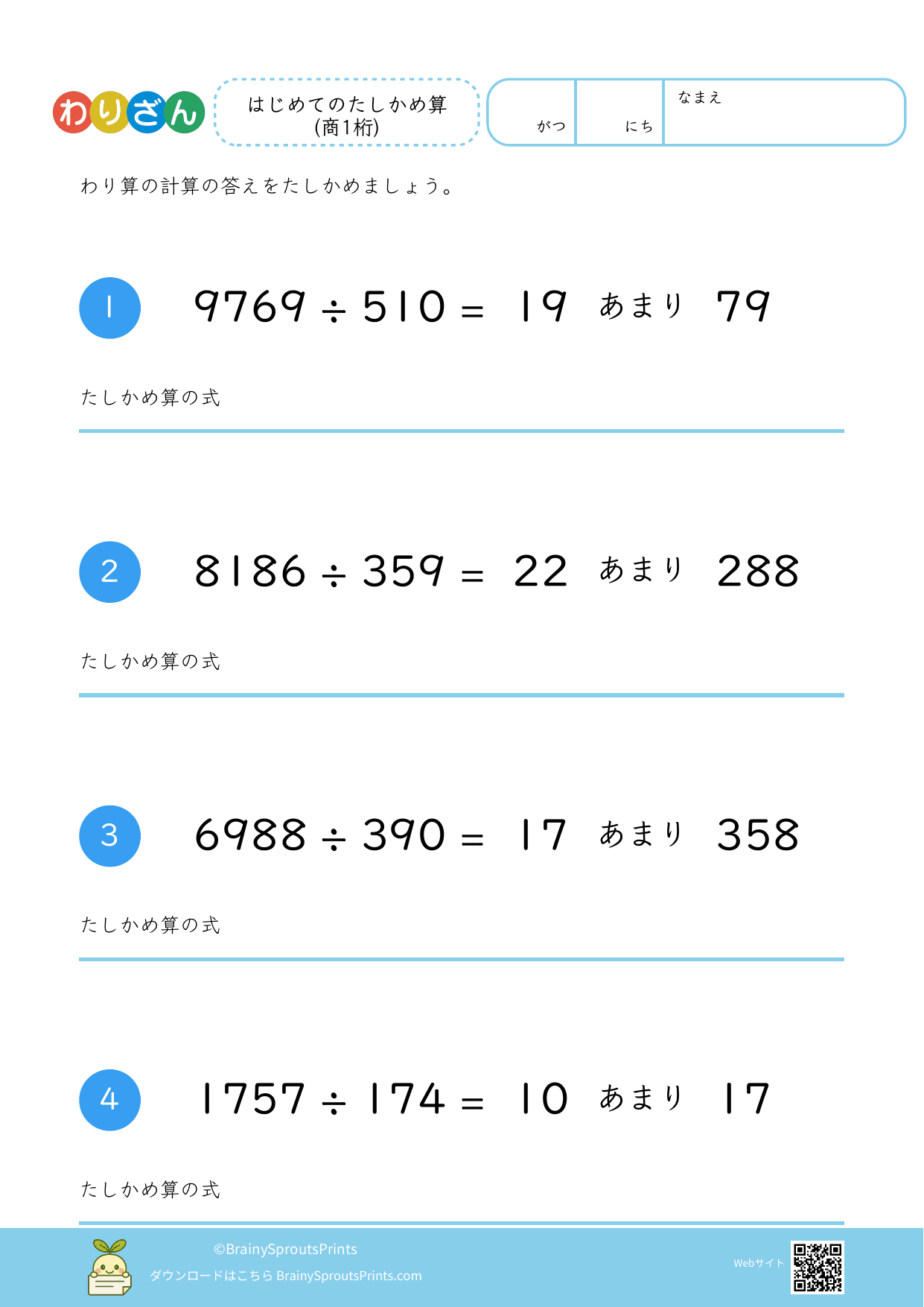 わり算たしかめ算(4桁÷3桁・余り有) #5