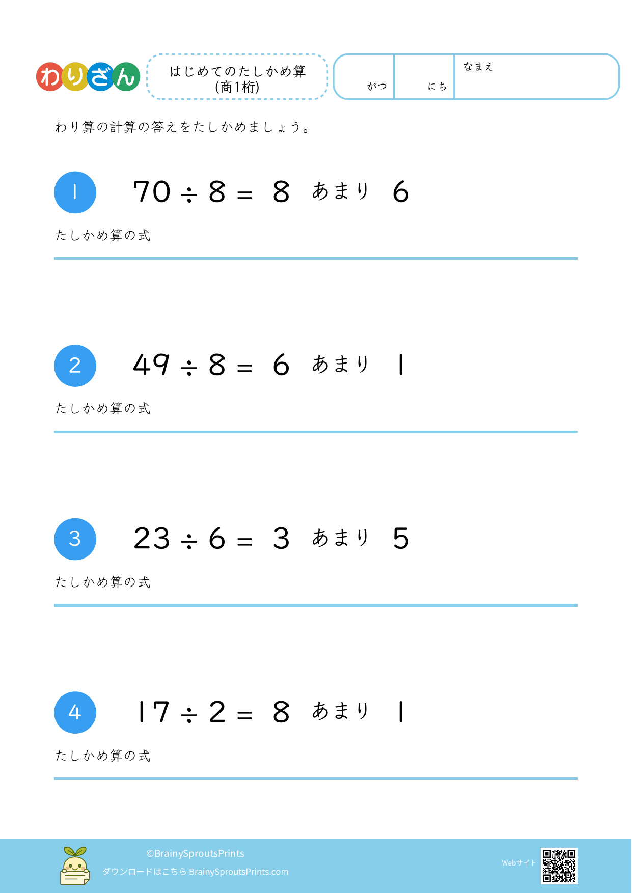わり算たしかめ算(商1桁・余り有) #1