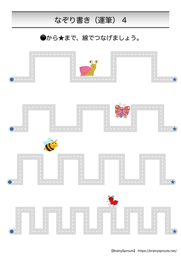 取り組んだあとは、「どの線がやりやすかった?」「どこが少しむずかしかった?」と聞くと、次に選ぶプリントの目安になります。 短い時間で気持ちよく終える方が続きやすいので、枚数を増やしすぎず、少し物足りないくらいで切り上げると取り入れやすくなります。