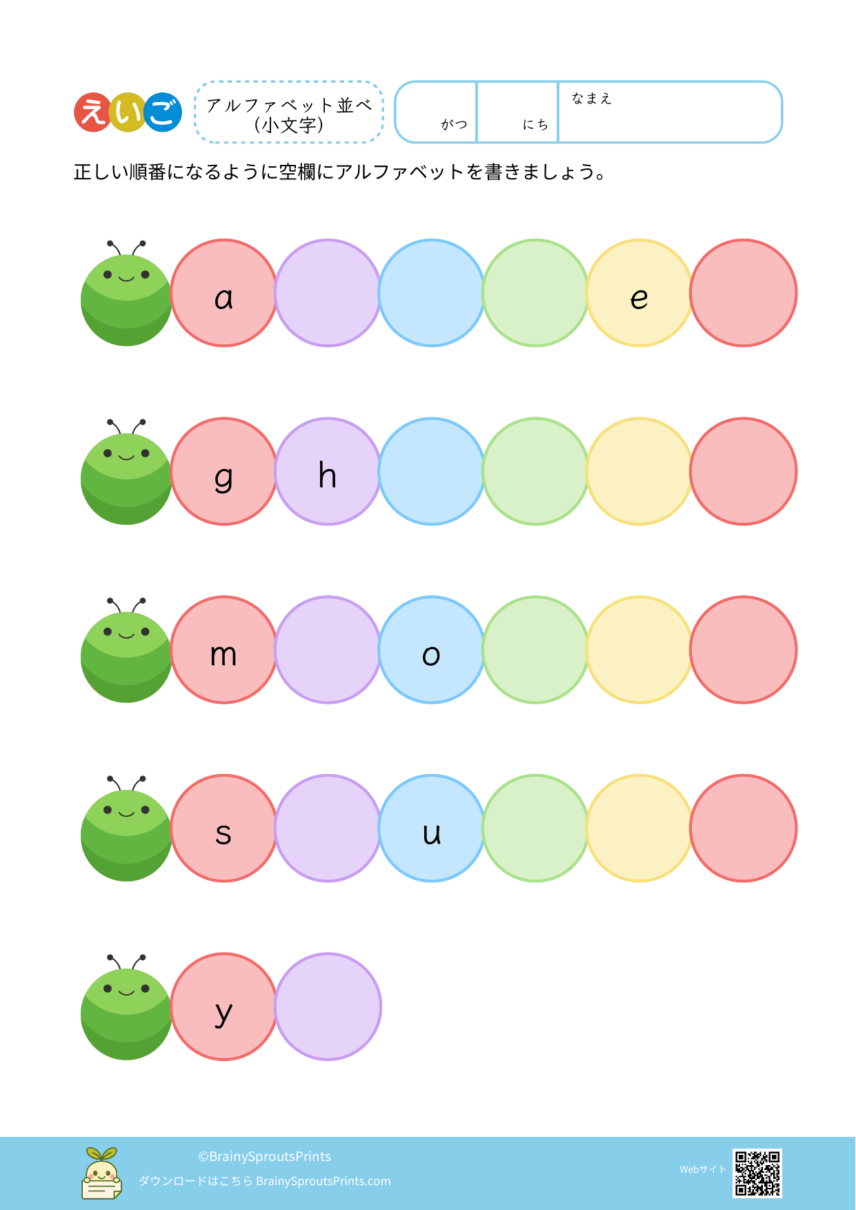 プリントの内容や難易度はあくまで目安です。同じ年齢でも理解のスピードや興味には個人差がありますので、無理に進めず、お子さまのペースに合わせてご利用いただくことをおすすめします。印刷時の設定や用紙サイズによって見え方が異なる場合がありますので、必要に応じて調整してください。教材は個人利用および教育目的の範囲内でご利用ください。詳しくは 利用規約 をご覧ください。