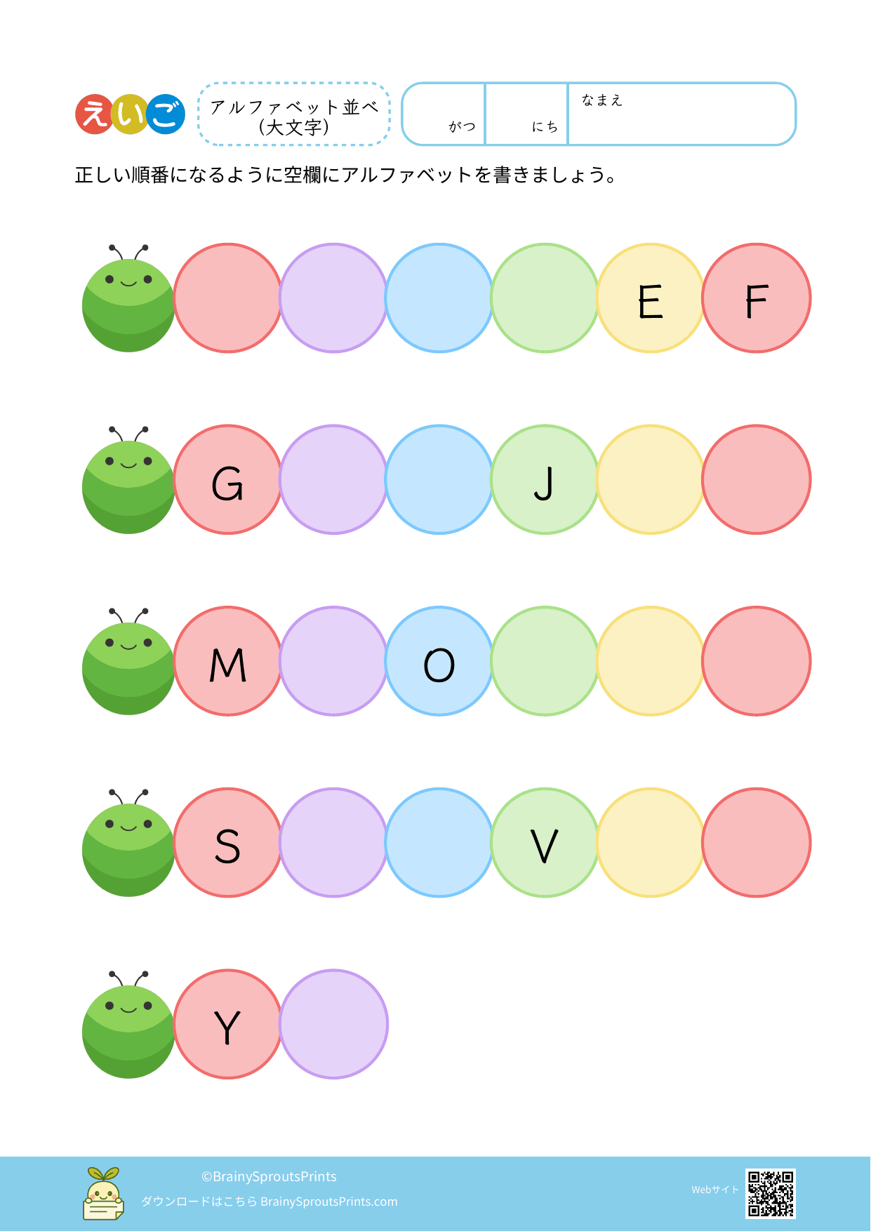 プリントの内容や難易度はあくまで目安です。同じ年齢でも理解のスピードや興味には個人差がありますので、無理に進めず、お子さまのペースに合わせてご利用いただくことをおすすめします。印刷時の設定や用紙サイズによって見え方が異なる場合がありますので、必要に応じて調整してください。教材は個人利用および教育目的の範囲内でご利用ください。詳しくは 利用規約 をご覧ください。