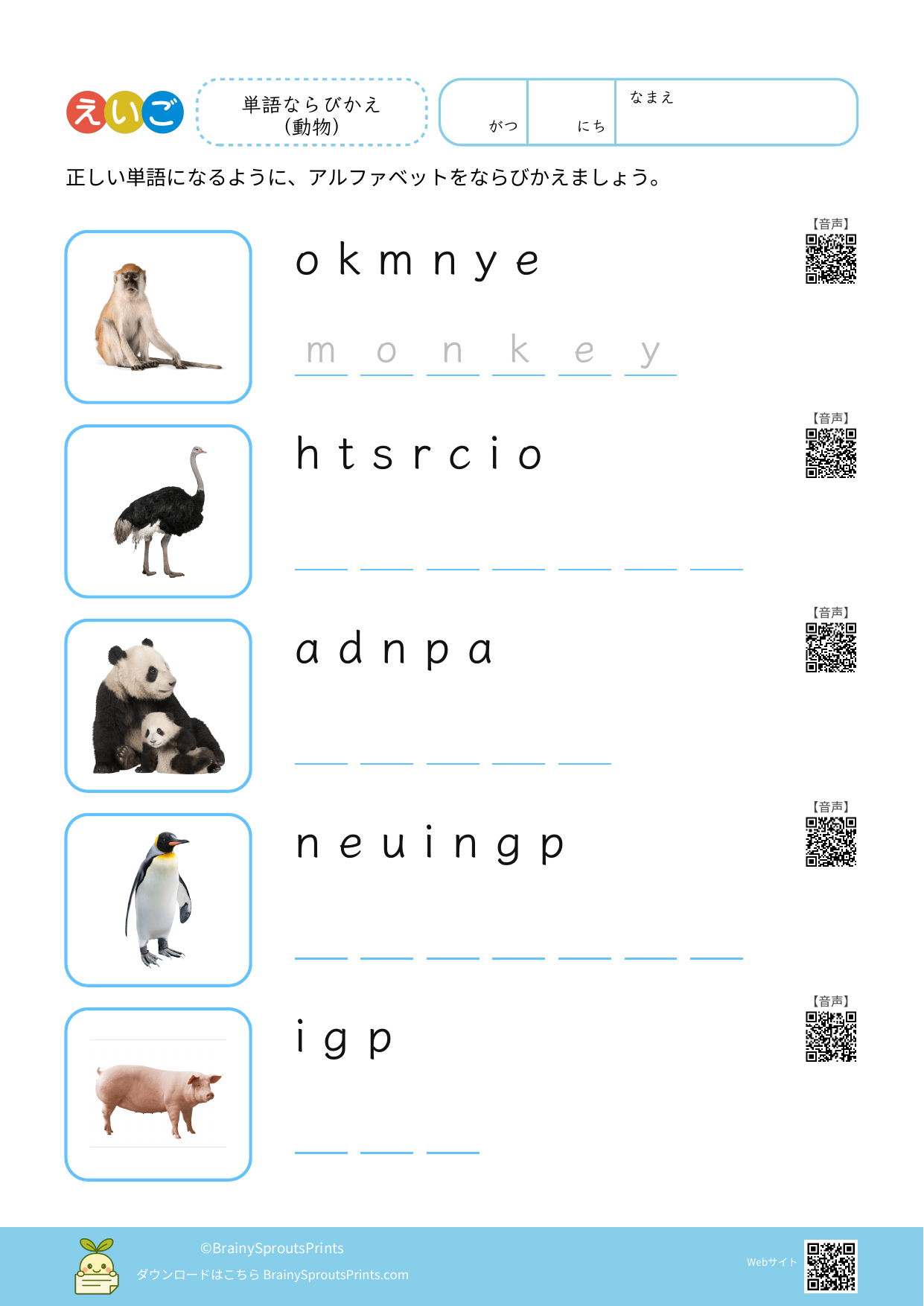 BrainySprouts Prints は、未就学児から小学生までの子どもを対象とした学習プリントを、保護者や教育者の方が家庭学習や教育現場で活用することを目的とした教育サイトです。語彙力や思考力を育てることを大切にし、日常の学習に無理なく取り入れられるシンプルな教材づくりを心がけています。