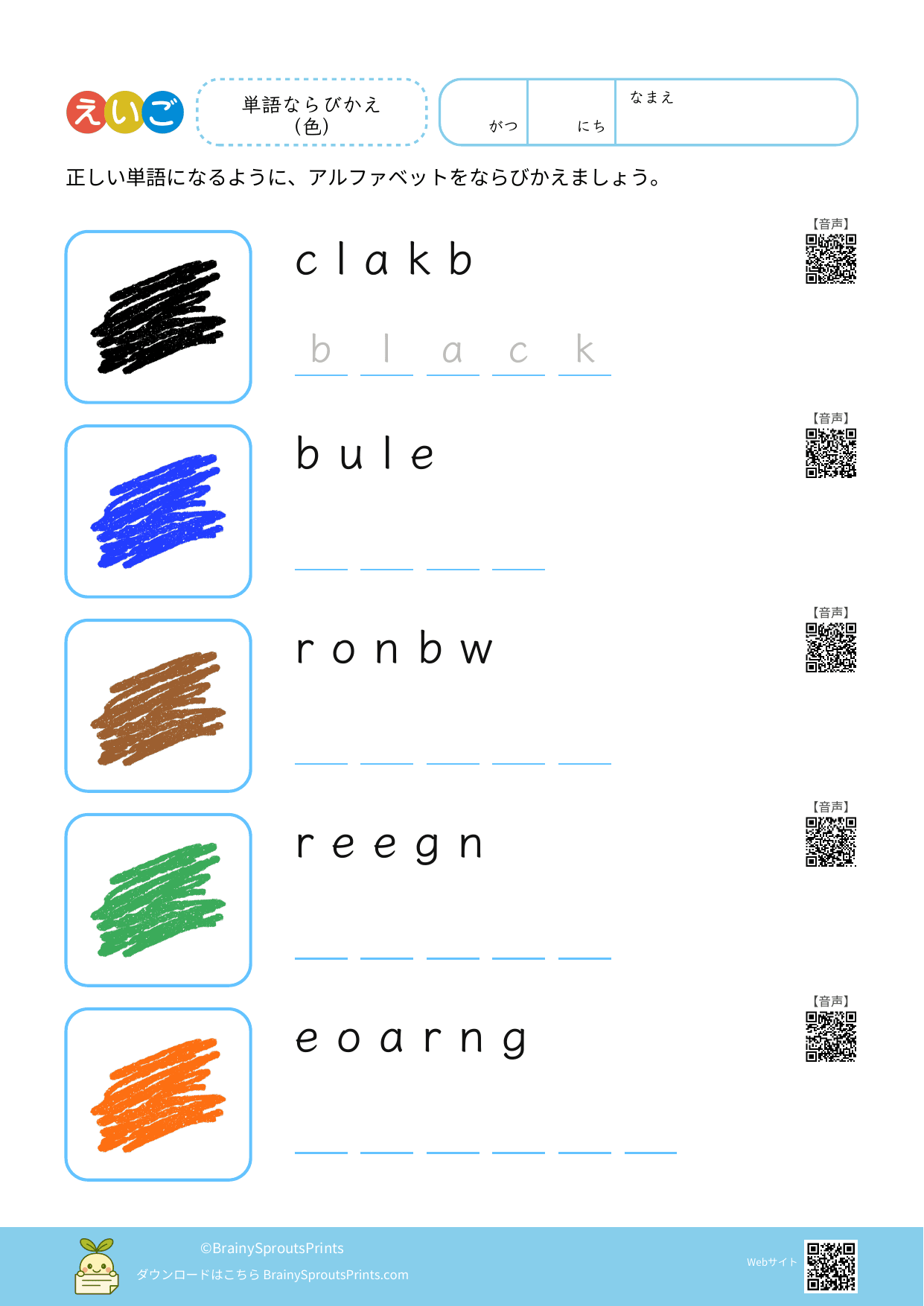 単語ならびかえ(色) #1