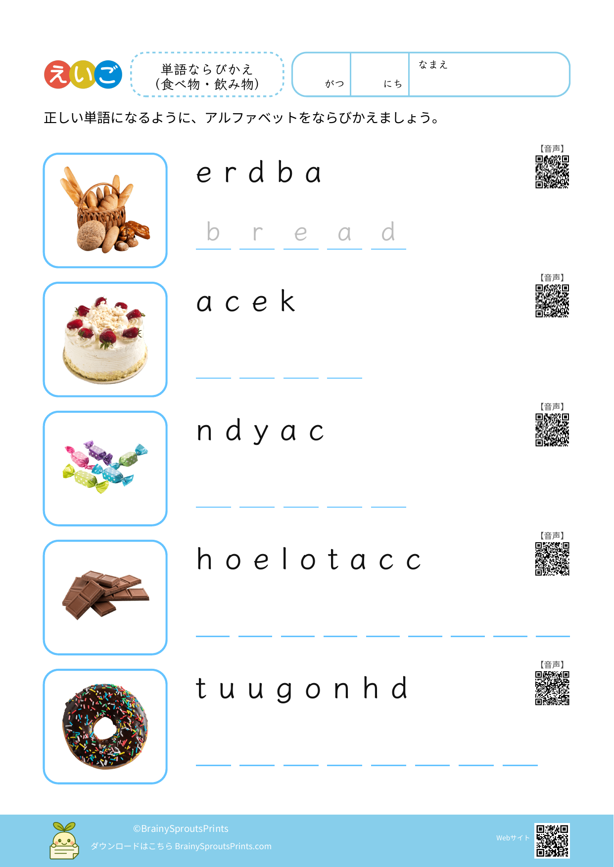 単語ならびかえ(食べ物・飲み物) #1