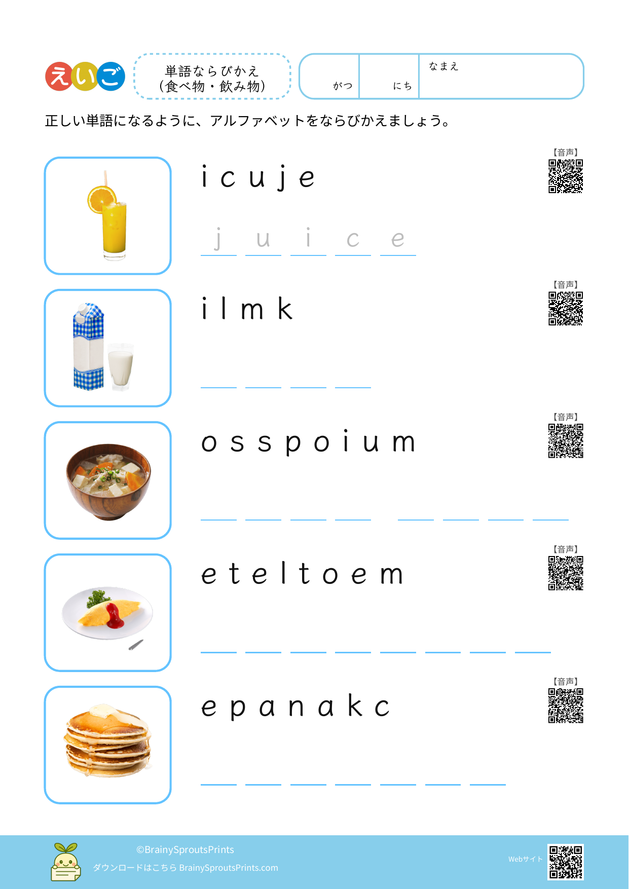 単語ならびかえ(食べ物・飲み物) #3