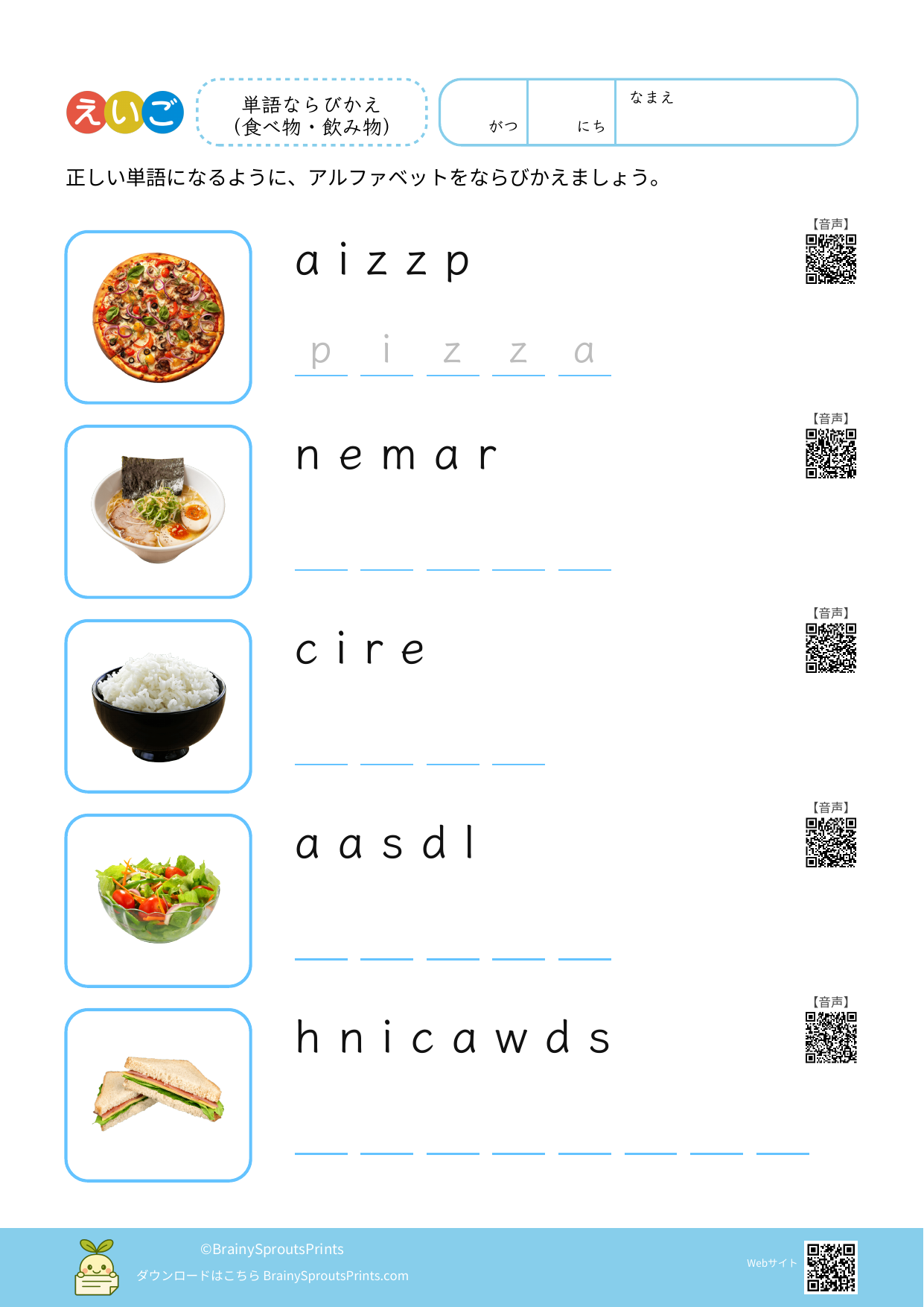 BrainySprouts Prints は、未就学児から小学生までの子どもを対象とした学習プリントを、保護者や教育者の方が家庭学習や教育現場で活用することを目的とした教育サイトです。語彙力や思考力を育てることを大切にし、日常の学習に無理なく取り入れられるシンプルな教材づくりを心がけています。