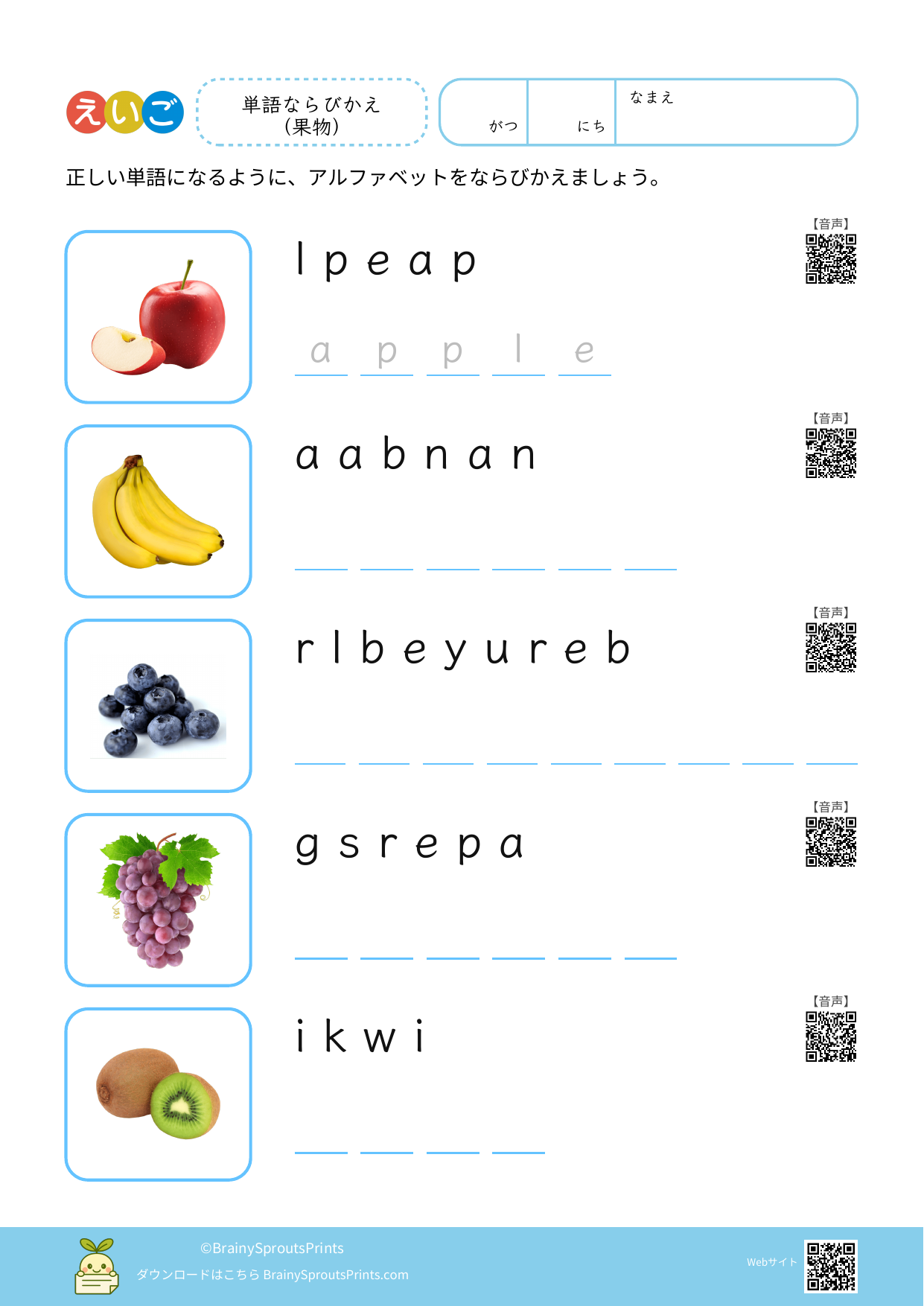 単語ならびかえ(果物) #1