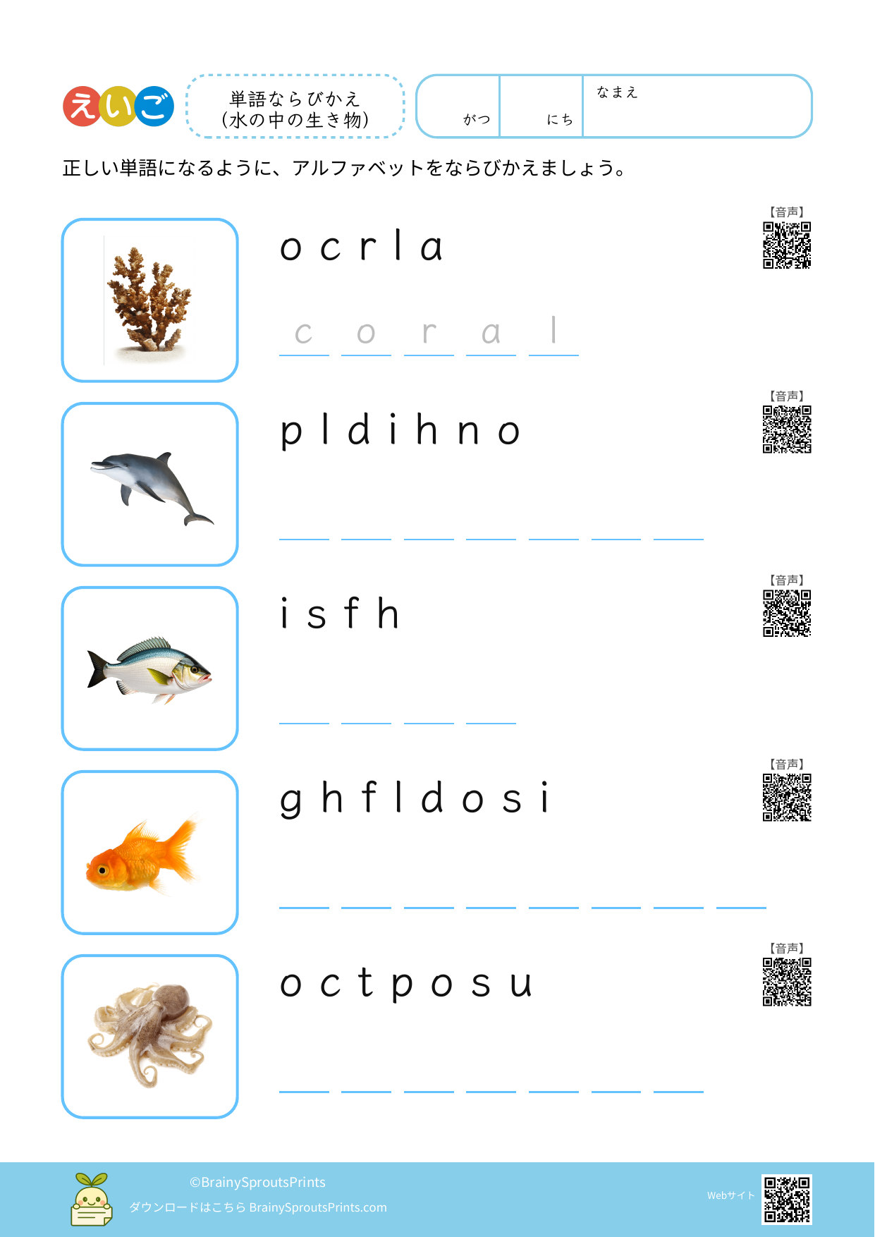 単語ならびかえ(水の中の生き物) #1