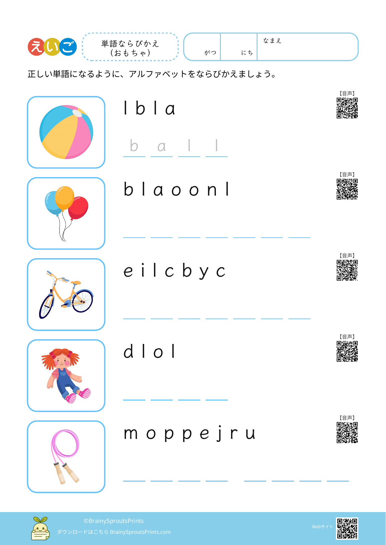 単語ならびかえ(おもちゃ) #1
