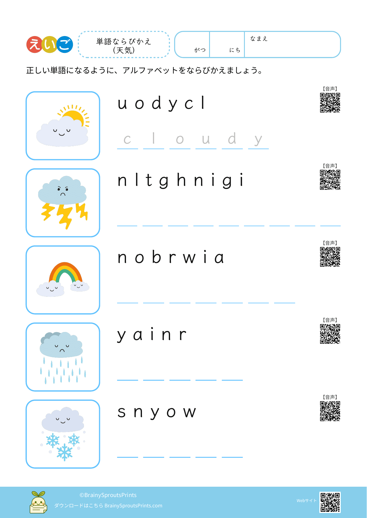 単語ならびかえ(天気) #1