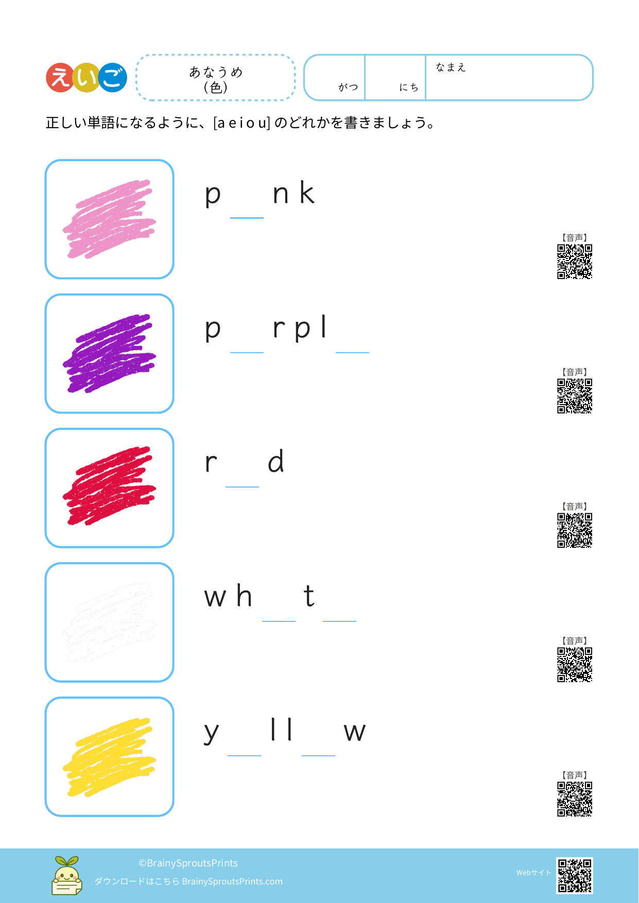 BrainySprouts Prints は、未就学児から小学生までの子どもを対象とした学習プリントを、保護者や教育者の方が家庭学習や教育現場で活用することを目的とした教育サイトです。語彙力や思考力を育てることを大切にし、日常の学習に無理なく取り入れられるシンプルな教材づくりを心がけています。