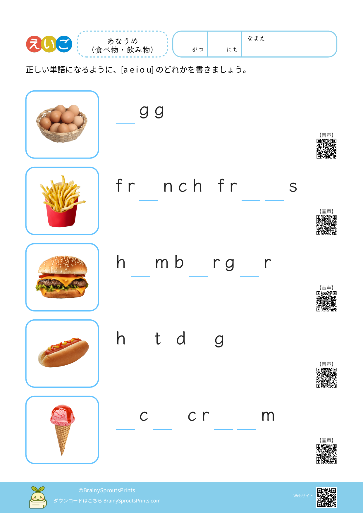 BrainySprouts Prints は、未就学児から小学生までの子どもを対象とした学習プリントを、保護者や教育者の方が家庭学習や教育現場で活用することを目的とした教育サイトです。語彙力や思考力を育てることを大切にし、日常の学習に無理なく取り入れられるシンプルな教材づくりを心がけています。