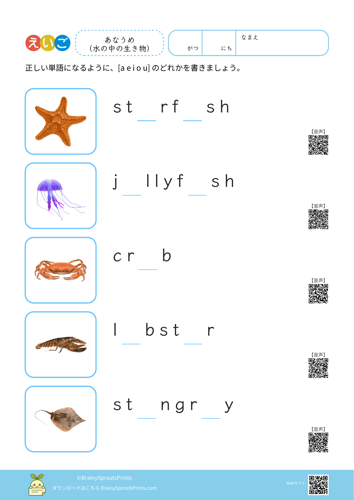 BrainySprouts Prints は、未就学児から小学生までの子どもを対象とした学習プリントを、保護者や教育者の方が家庭学習や教育現場で活用することを目的とした教育サイトです。語彙力や思考力を育てることを大切にし、日常の学習に無理なく取り入れられるシンプルな教材づくりを心がけています。